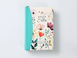 BIBLIA RVR60 065 CELESTE FLORAL TAPA DURA CON ELASTICO TAMAÑO MANUAL