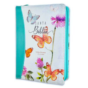BIBLIA RVR60 045 MARIPOSA TURQUESA CON INDICE Y CIERRE TAMAÑO PORTATIL