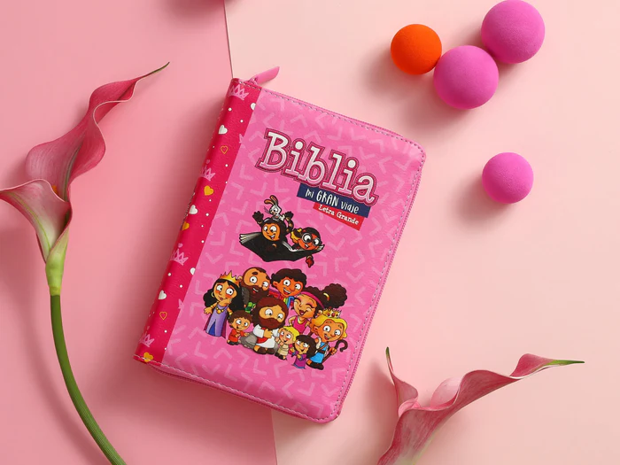 BIBLIA RVR60 045 MI GRAN VIAJE NIÑAS ROSADA CON CIERRE TAMAÑO PORTATIL