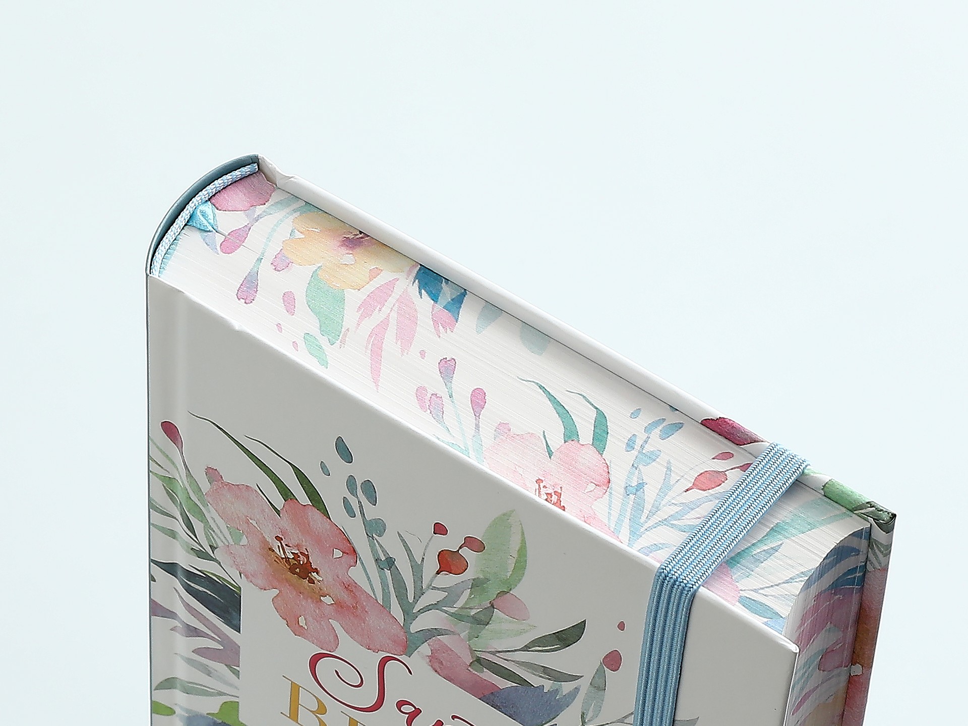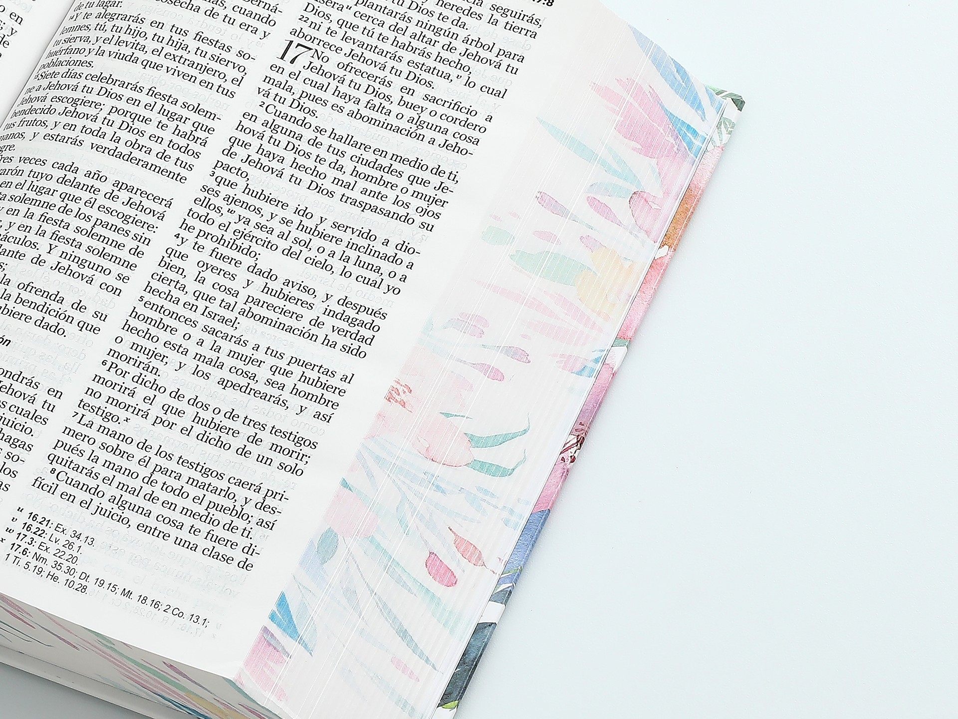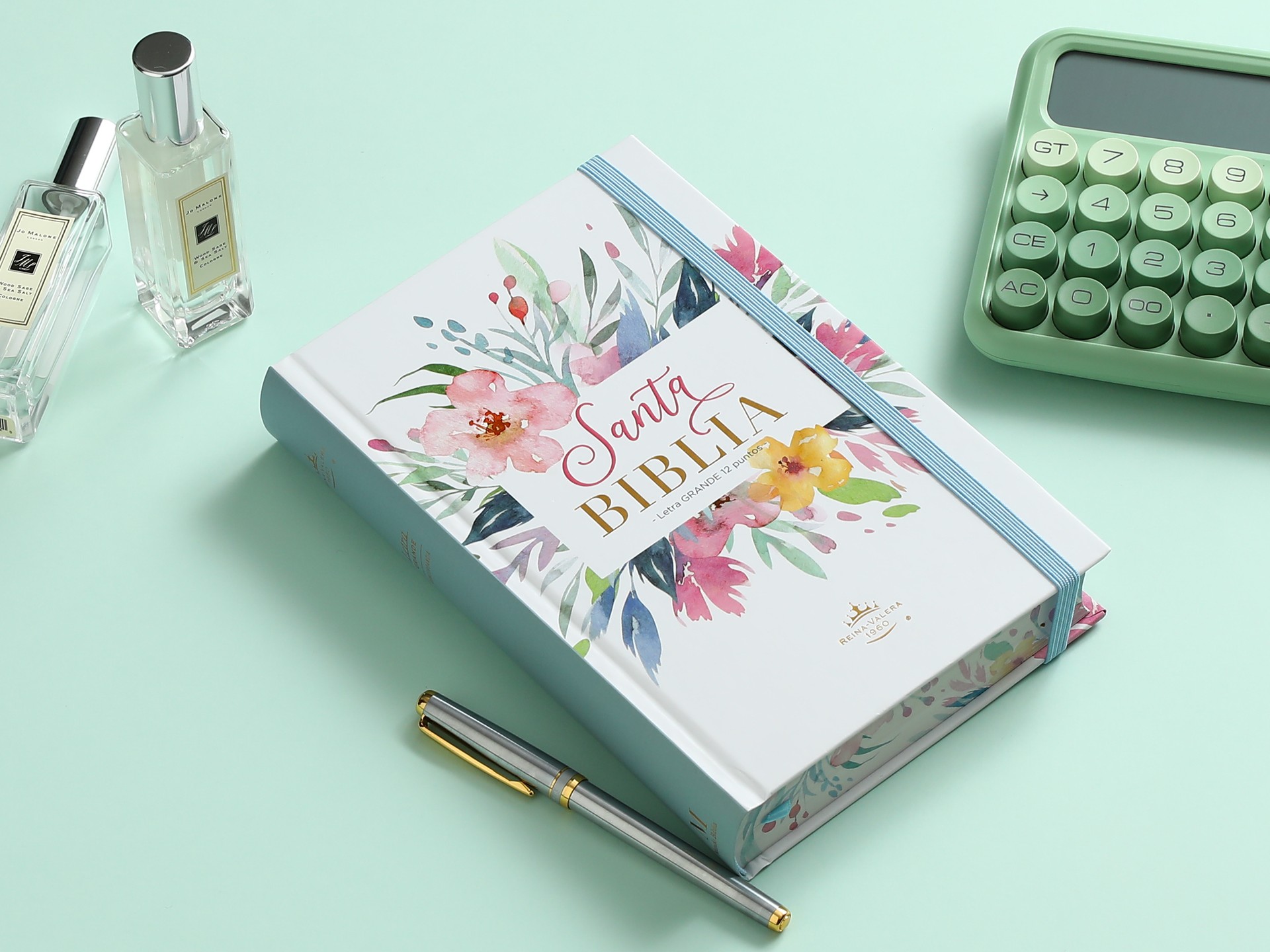BIBLIA RVR60 065 CELESTE FLORAL TAPA DURA CON ELASTICO TAMAÑO MANUAL