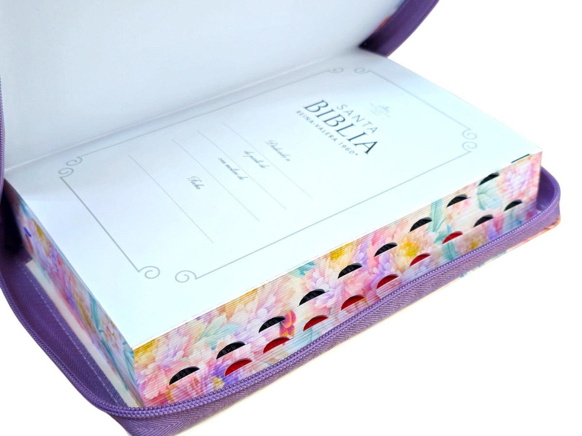 BIBLIA RVR60 068 JARDIN LILA CON INDICE Y CIERRE TAMAÑO MANUAL