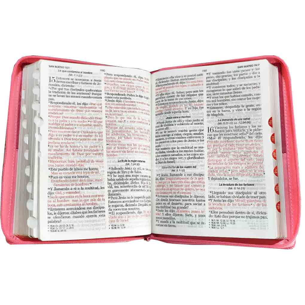 BIBLIA RVR60 085 BIFLORAL ROSADO CON INDICE Y CIERRE TAMAÑO MANUAL