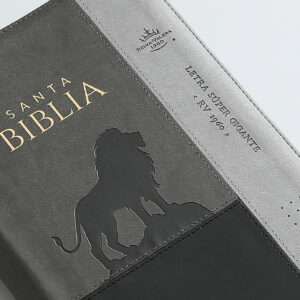 BIBLIA RVR60 088 LEON GRIS CON INDICE Y CIERRE TAMAÑO GRANDE